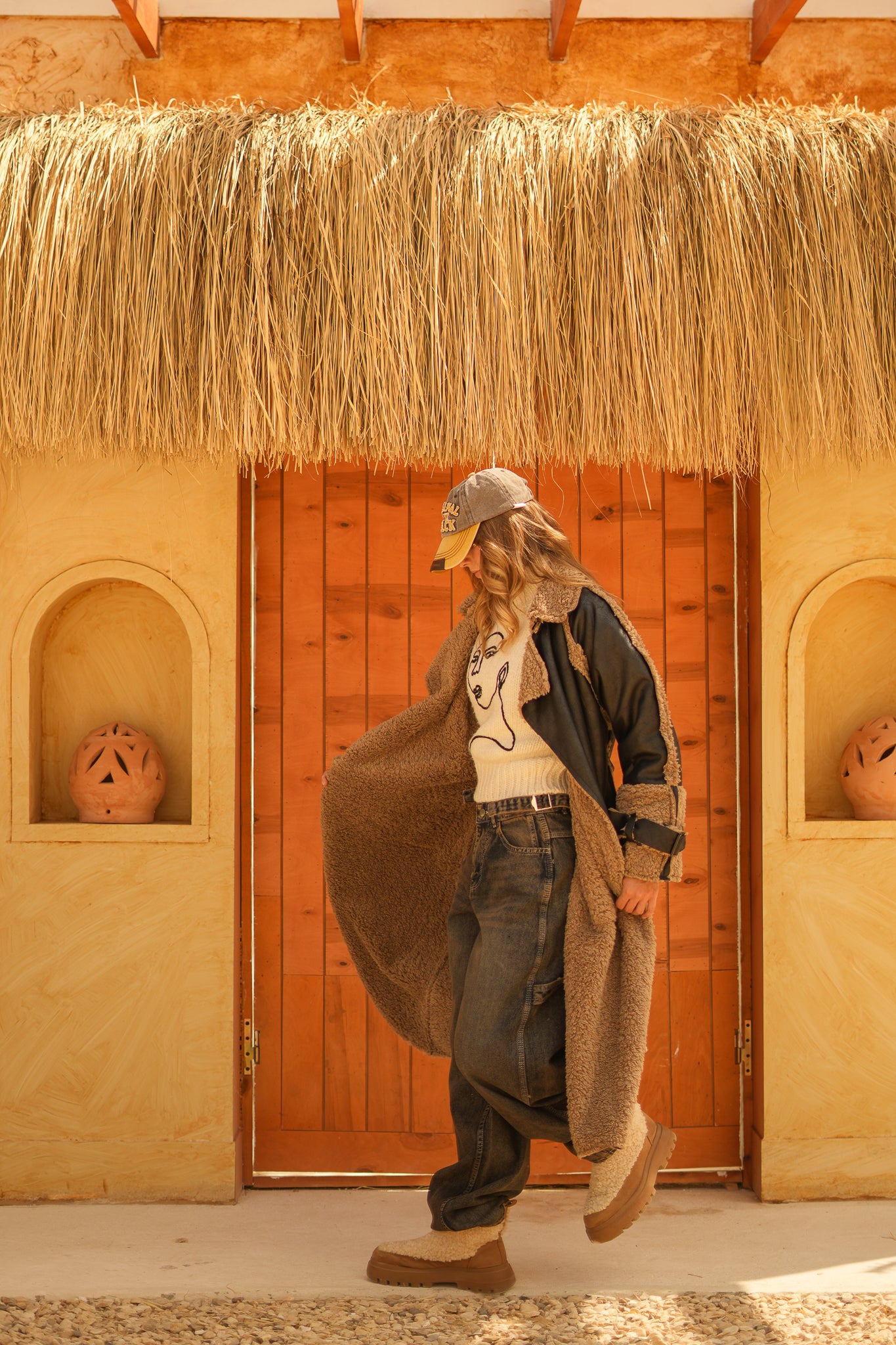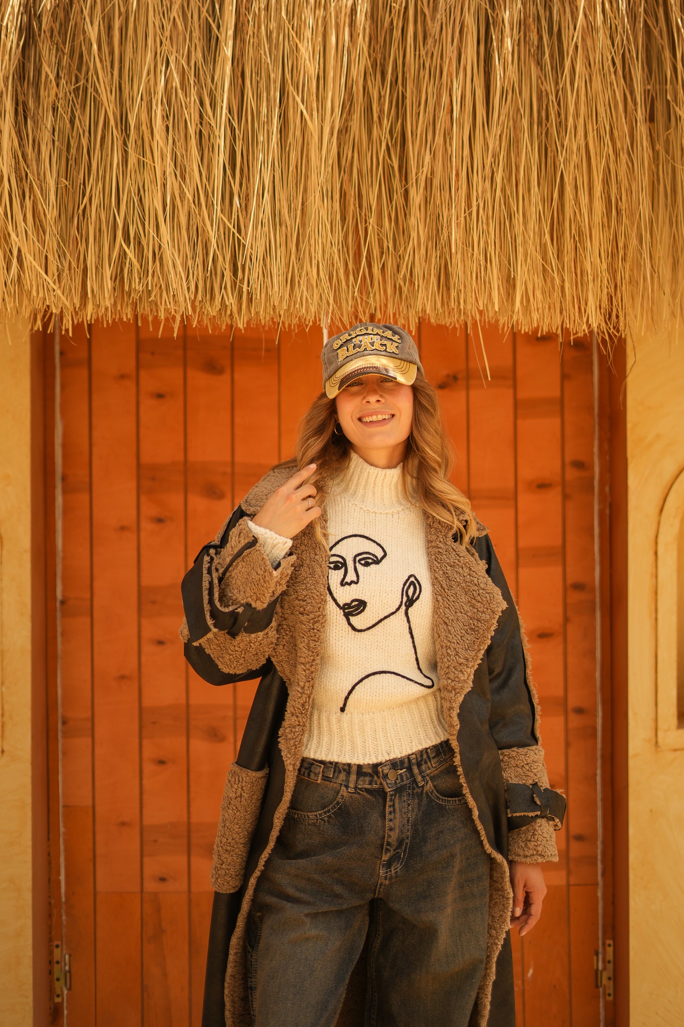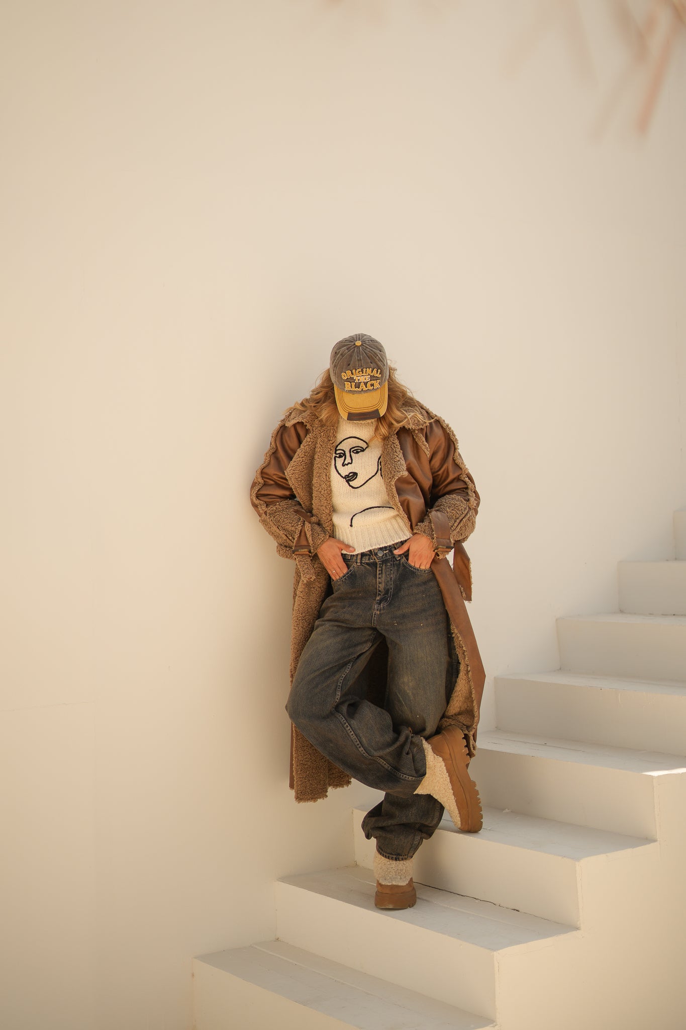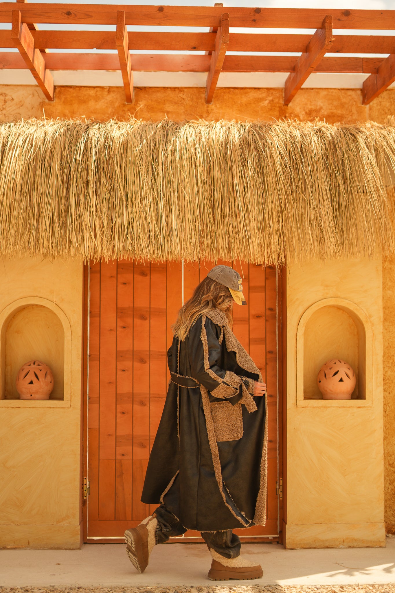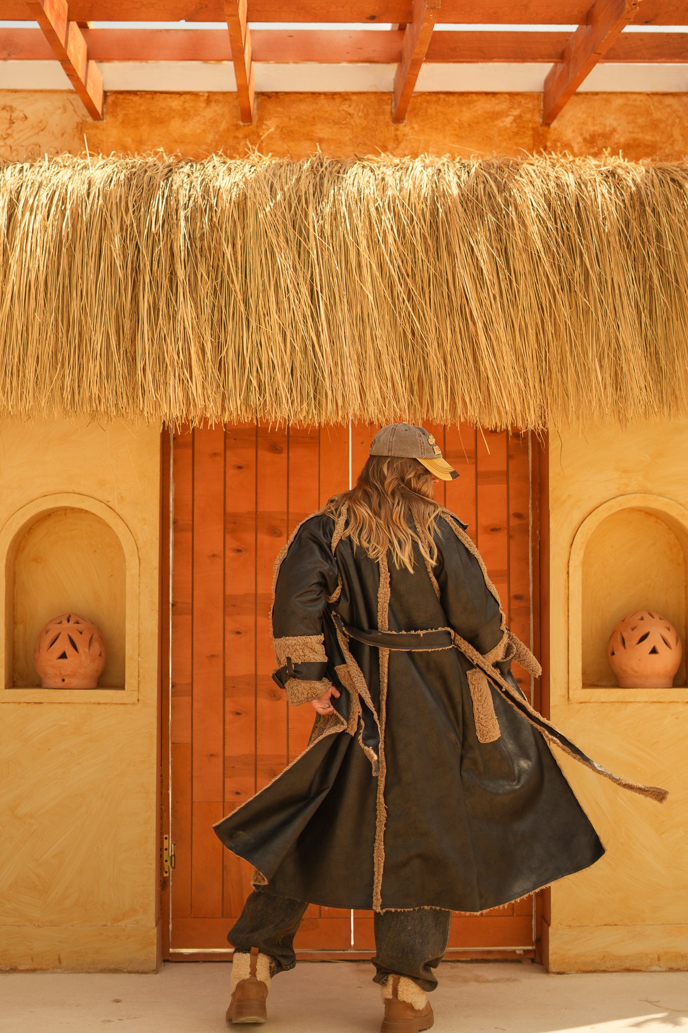 raw edge faux leather long coat